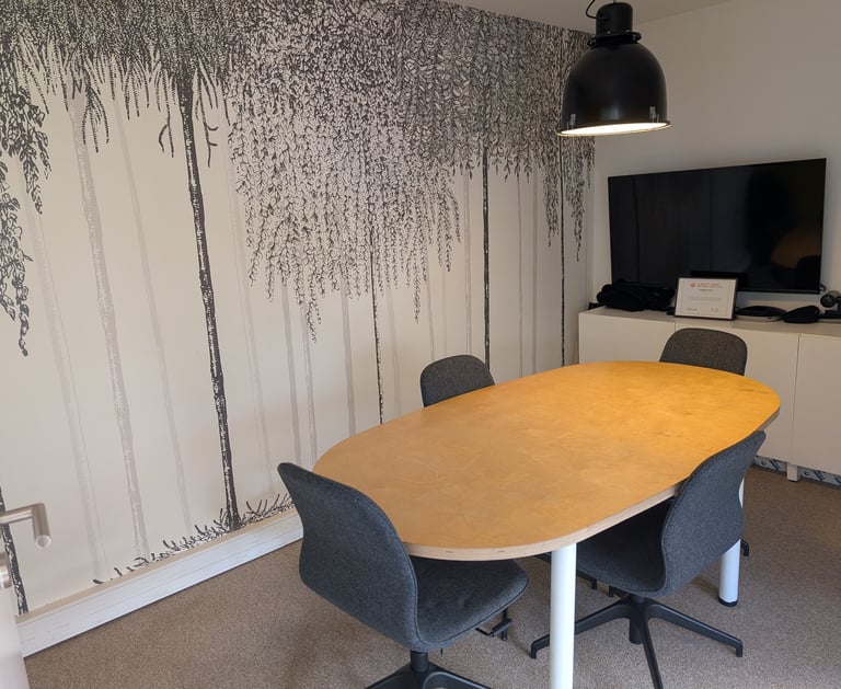 Salles de réunion sobres équipées de grands écrans, tableau blanc et tables modulables. Elles sont conçues pour aller droit au but : préparations de release, démonstrations clients, daily meetings ou ateliers UX.